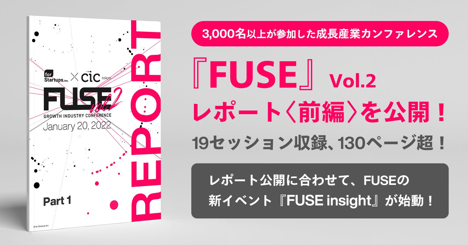また、レポートの公開に合わせて、成長産業カンファレンス『FUSE』のコンセプト「スタートアップを中心とした”融合”と”着火”」をスローガンとして引き継ぎ、協業・共創につながるきっかけを創出する新イベント『FUSE insight』を始動。第一回は、2022年5月30日(月)に開催いたします。