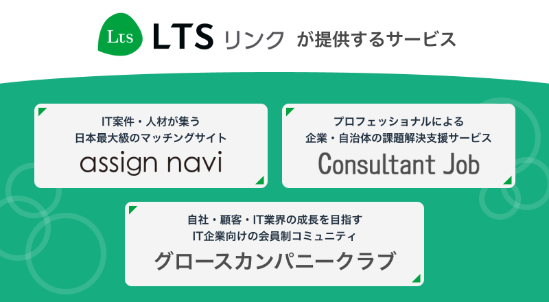 株式会社エル・ティー・エス リンクは「プロフェッショナル輩出支援」「最適化」をキーワードにコンサルティング/IT業界の課題を解決するサービスを提供しています。様々な角度からIT業界の企業や人材を繋ぎ、また新しいビジネス機会を創出する事業を拡大してまいります。