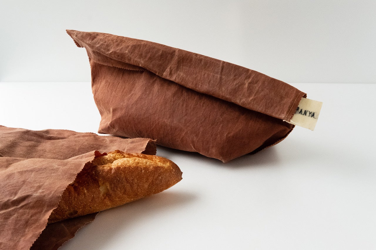 地元の余剰渋柿で作った「柿渋」を使い、オーガニックコットンに太陽の力で染める「太陽染め」で染め重ねた「柿渋染め」の商品を製作。経年変化やメンテナンスを楽しむ「使い捨てないもの」を提案します。