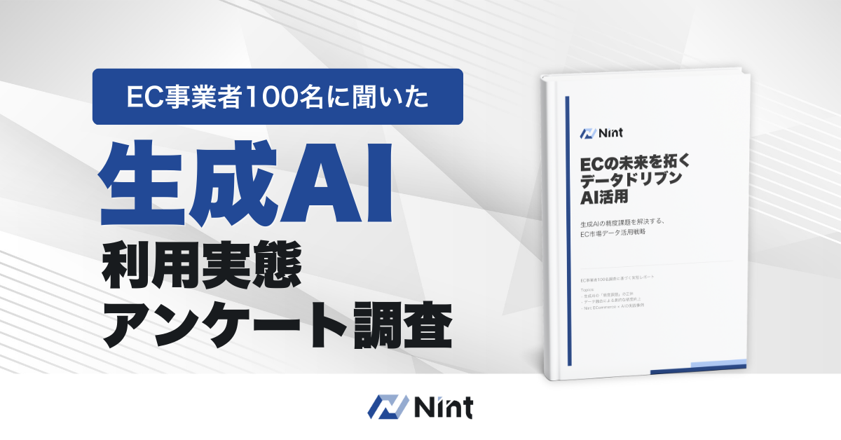 国内3大ECモール(楽天市場・Amazon・Yahoo!ショッピング)の公開データを収集・分析するクラウドサービス「Nint ECommerce」を提供している株式会社Nint(本社:東京都新宿区、代表取締役:吉野順子、以下「Nint」)は、EC事業者100名を対象に実施したアンケート調査をもとに、生成AI活用において多くの担当者が感じている「精度不安」の要因と、その解決の方向性を整理した調査レポート「EC事業者100名に聞いた、生成AI利用実態アンケート調査結果」を公開しました。