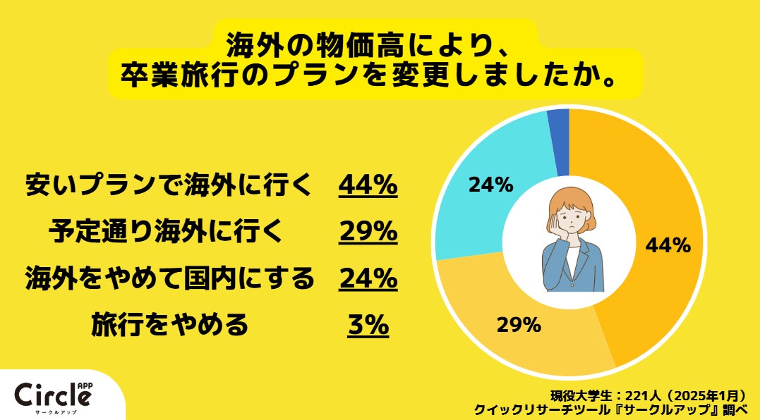 ■24%の学生が「海外の物価高により海外旅行を国内旅行に変更した」と回答。