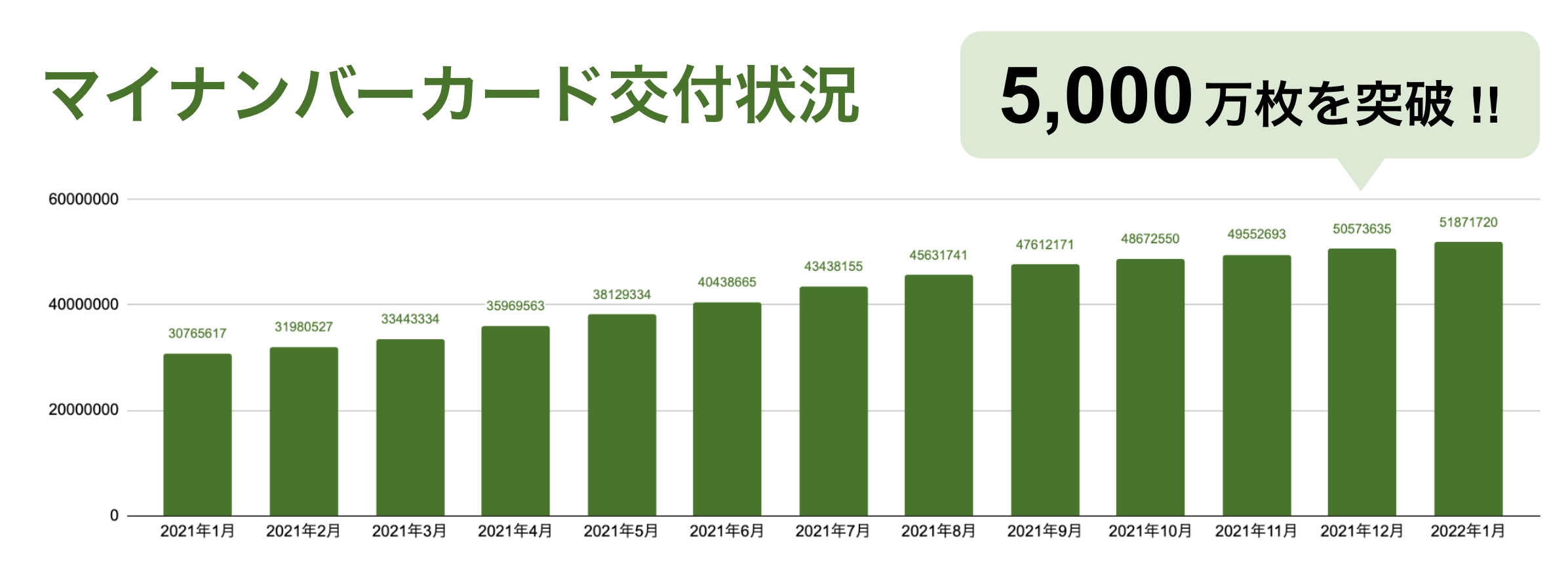マイナンバーカード交付枚数(※2)は5000万枚を突破。全人口の約39.5%