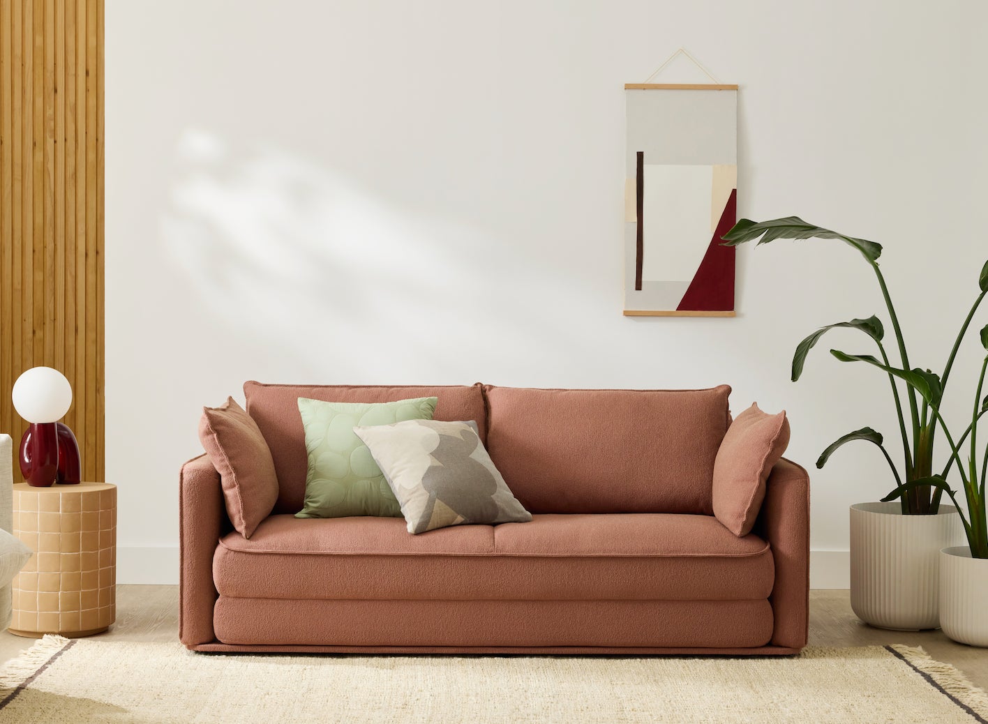 「たった5秒でベッドに変わる」ソファーベッドCUSHYに、2月24日から新色が登場。リラックス感あふれる緑色の「グリーンワトル」と落ち着いたピンク色の「サンセットラスト」が、お部屋に心地よいアクセントを加えてくれます。コアラマットレスと同じクラウドセル™︎を使用したベッドの寝心地も最高です。2人掛け(セミダブル)129,900円〜