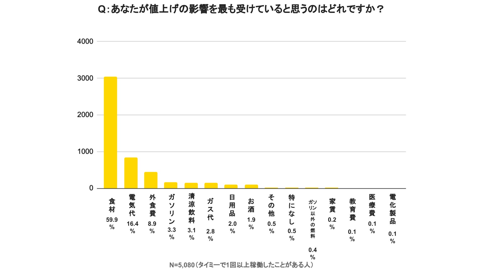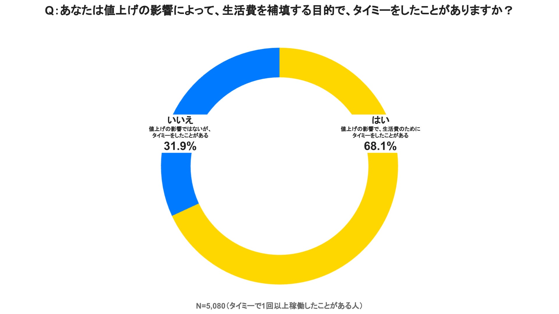 スキマバイトサービス「タイミー」を提供する株式会社タイミー(所在地:東京都港区、代表取締役:小川 嶺)は、「タイミー」に登録している働き手5,080名を対象に、生活者にとって大きな関心事になっている「物価高・値上げ」と「スキマバイト」に関する実態調査の第7回目の調査(過去6回の調査結果は末尾参照)を実施いたしました。