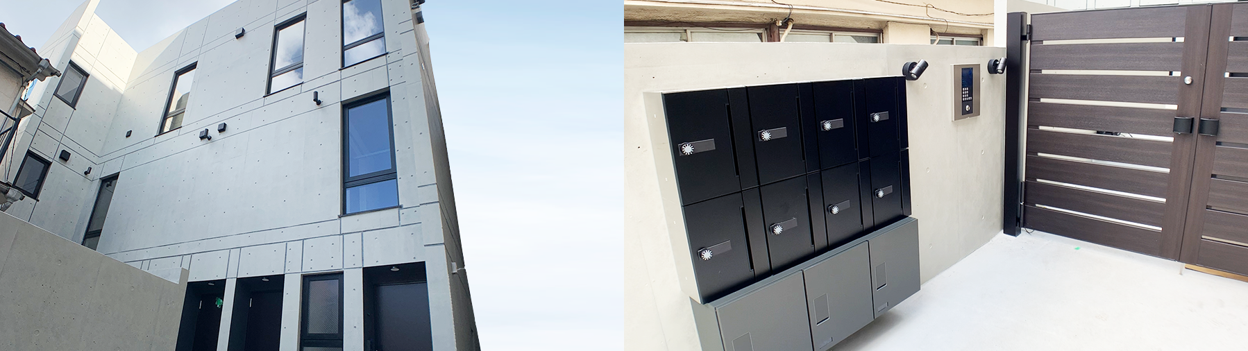 コンクリート打ち放しのスタイリッシュな長屋タイプRCデザイナーズマンション