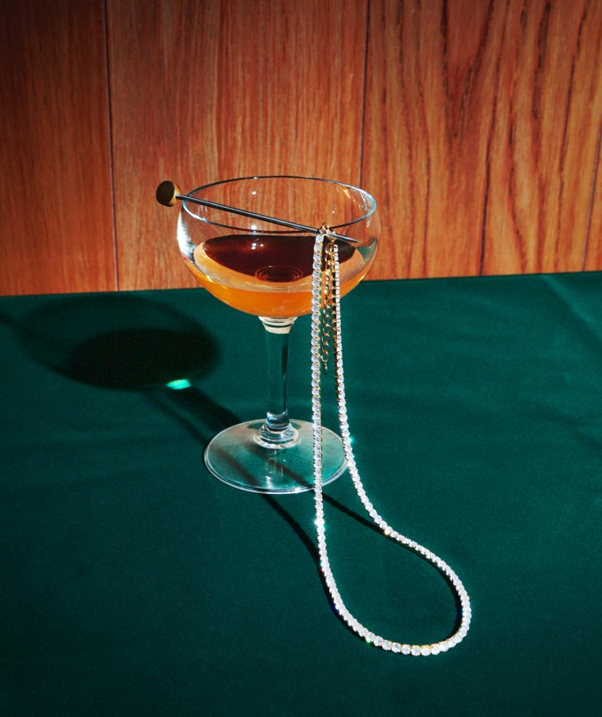 流行などに左右されないクラシックなアイテムのラインストーンネックレス。