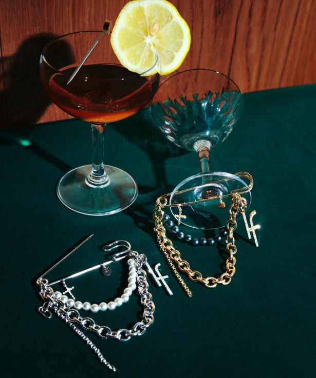 過去のコレクションで使用したブラックパール、チェーン、クロスモチーフをミックスしデザインされたこれまでのInfactionの歴史が感じられるアイテムです。