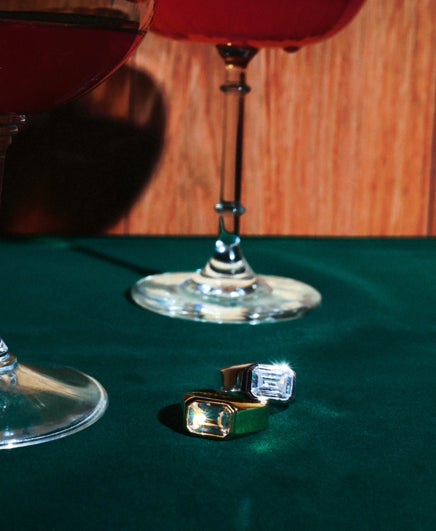シンプルながらも大胆な輝きを放つスクエアカットのカレッジリング。角度に合わせて光を反射するストーンは、凛とした輝きを放ち身につけるだけでその日のスタイルの品格を上げてくれます。