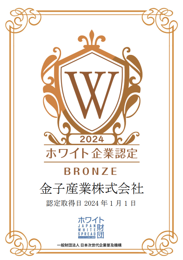金子産業株式会社様を「ホワイト企業認定 ブロンズランク 」として認定いたしました!