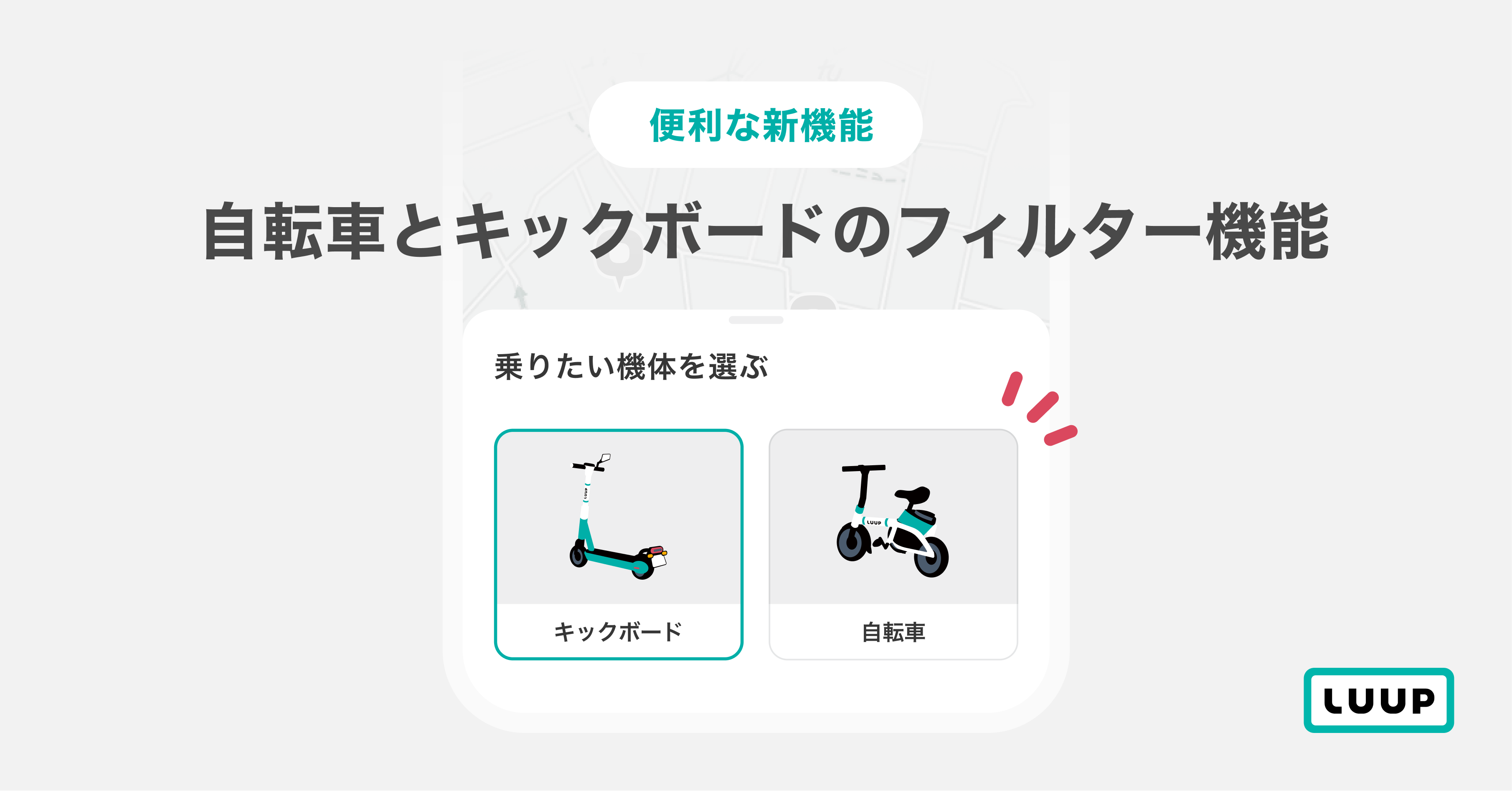 ユーザーの皆様に日々の移動でLUUPを活用いただいている中で、特に要望が多かった機能について開発を進めてまいりました。今回、モビリティ別のフィルター表示が可能となったことで、皆様の生活に更に寄り添うサービスとなれることを願っています。