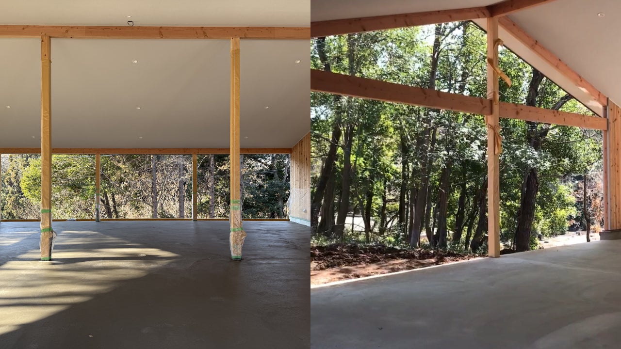 晴れテラスは、自然に溶け込む半屋外のスペースで、建物内から外のアクティビティを一体となって感じることができる場所です。子供たちが日中に楽しむアクティビティを安心して見守ることができ、さらに雨の日でも遊び続けられる環境が整っているため、天候に左右されることなく楽しい時間を過ごせます。