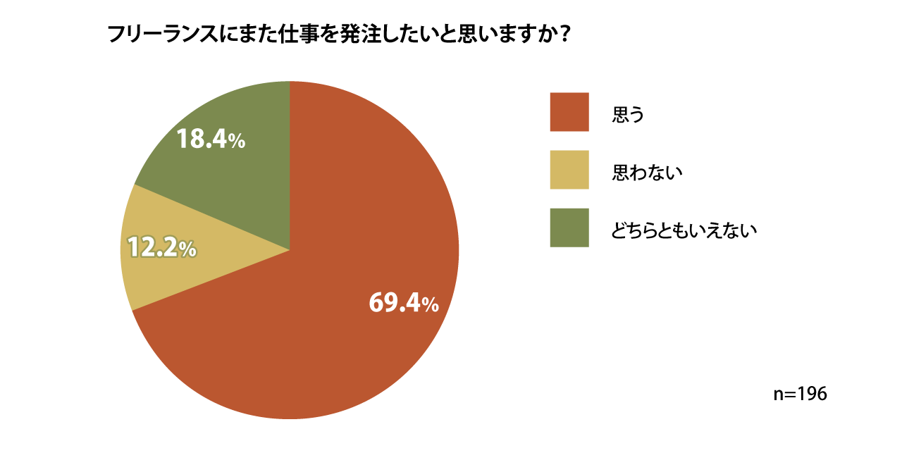 ・フリーランスにまた仕事を発注したいという回答は7割にのぼる
