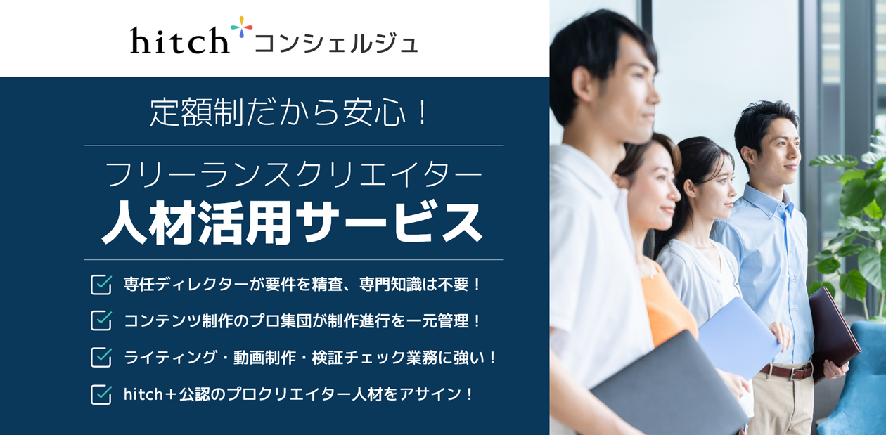 【モニターキャンペーン中】月5万円~の定額制フリーランスクリエイター活用サービス「hitchコンシェルジュ」