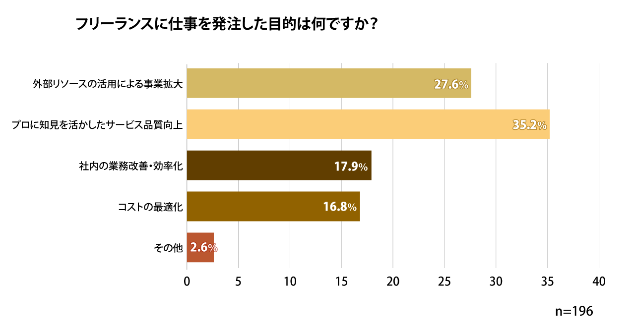 いずれの回答も、中長期的な成果創出へ向けた取り組みとして社外のノウハウを取り入れるうえで、専門性を持ったフリーランスが重宝されているようです。
