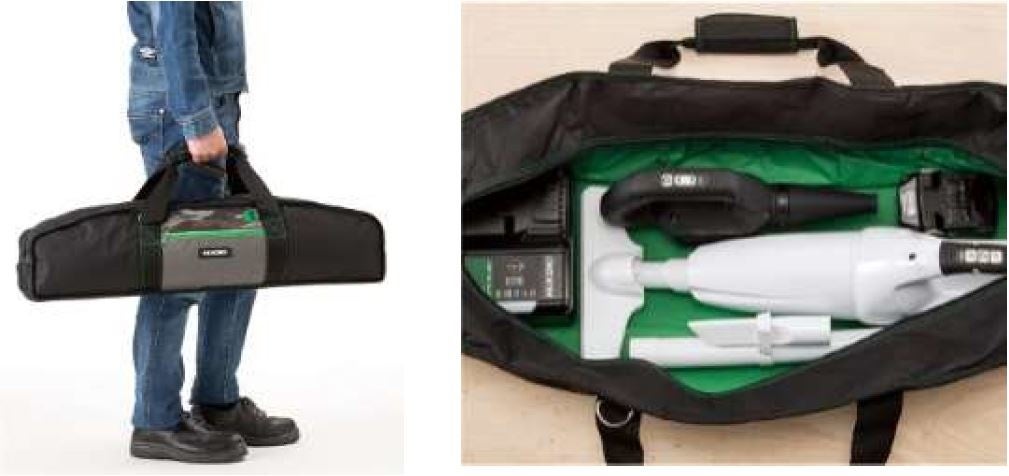 クリーナとブロワをまとめて収納できる大容量の収納バッグを標準付属しています。セットに含まれているマルチボルト蓄電池BSL 36A18と急速充電器UC 18YDL2も丸ごと収納可能で、持ち運びに便利です。
