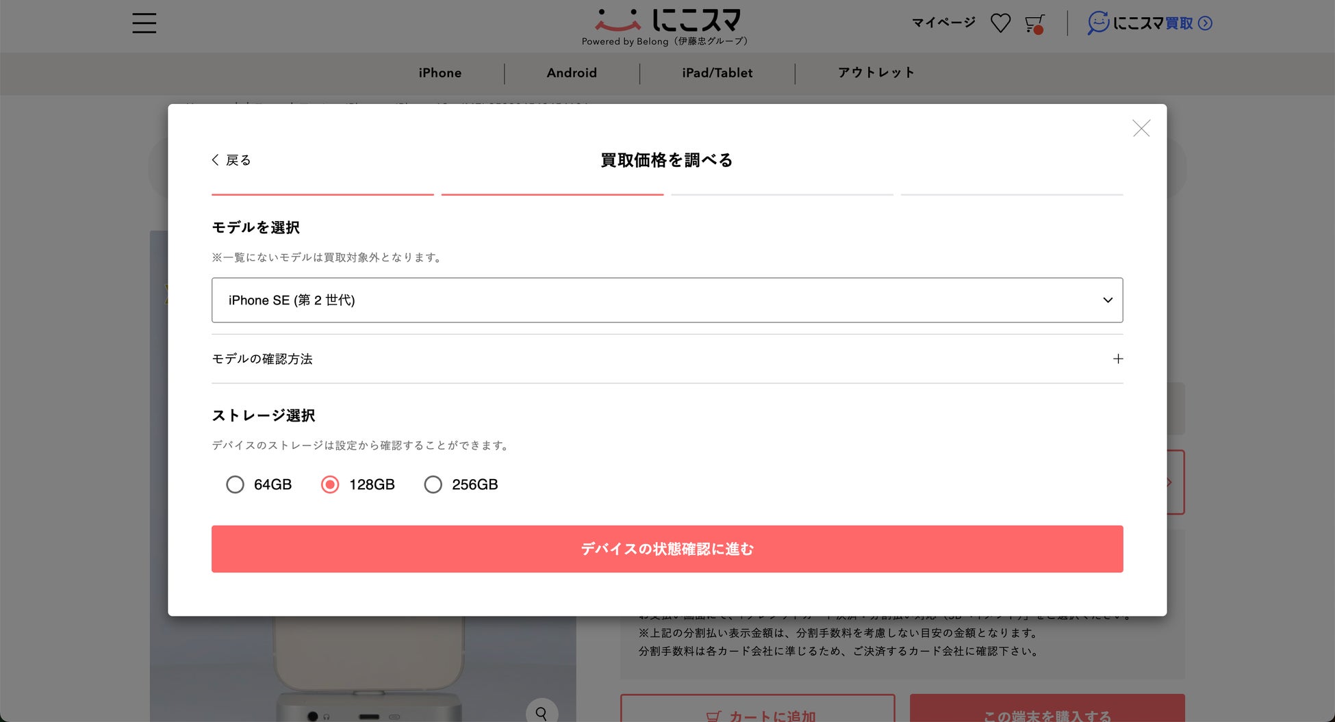 近年、生活者におけるサーキュラーエコノミー意識の高まりや、高機能化に伴う新品価格の上昇などにより、所有しているスマートフォンの売却金額を踏まえた、新しいスマートフォンの購入検討ニーズが高まっているといわれていますが、この度の新機能は、「にこスマ」で商品を選択した際に、所有しているスマートフォンの買取価格を調べられるものです。