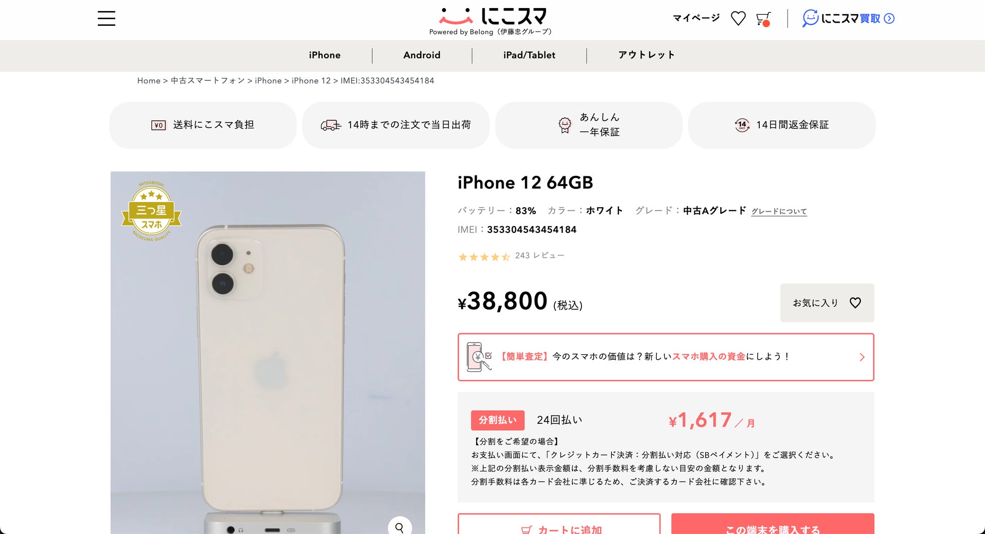 中古スマホ販売の「にこスマ」、購入時に実質負担額の提示機能を追加