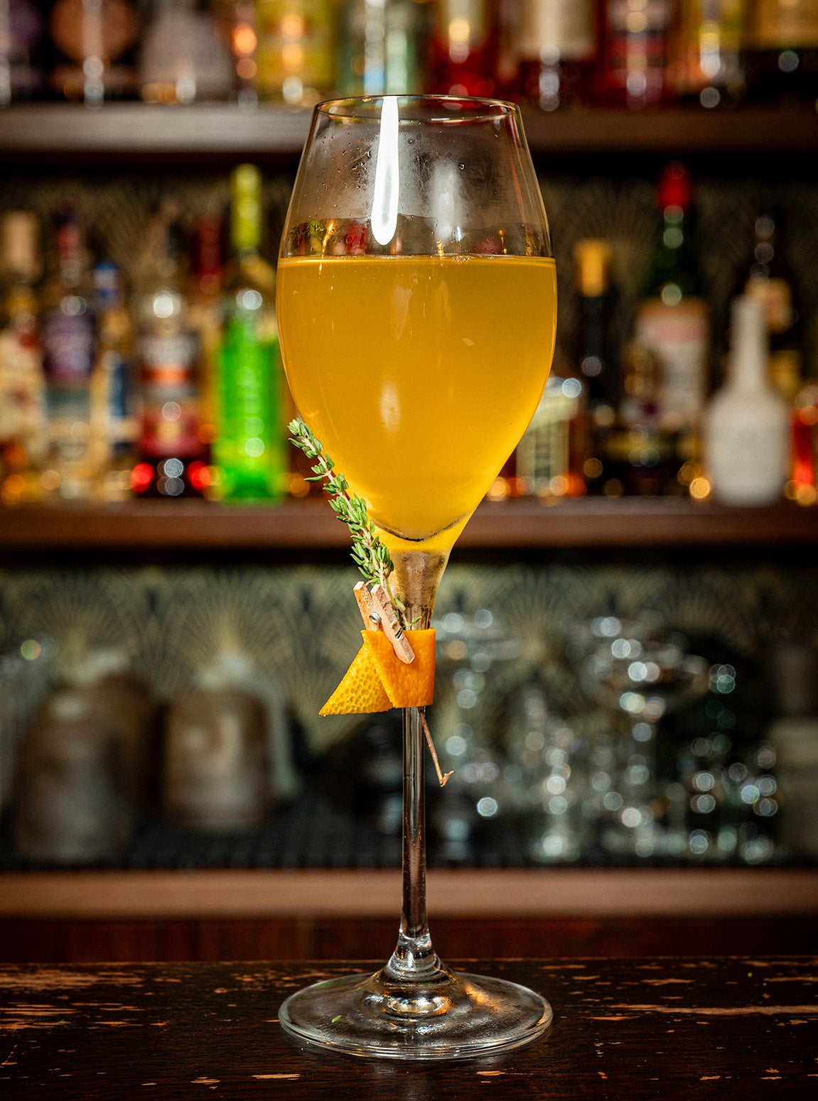 完熟梅ピューレタイプのフルーティーな本格梅酒にポーランドのバイソングラスを漬け込んだフレーバードウォッカ、林檎とハーブを使用したコーディアルシロップをブレンドし、ワイン梅酒スパークリングで仕上げたフルーティーで華やかなカクテル。