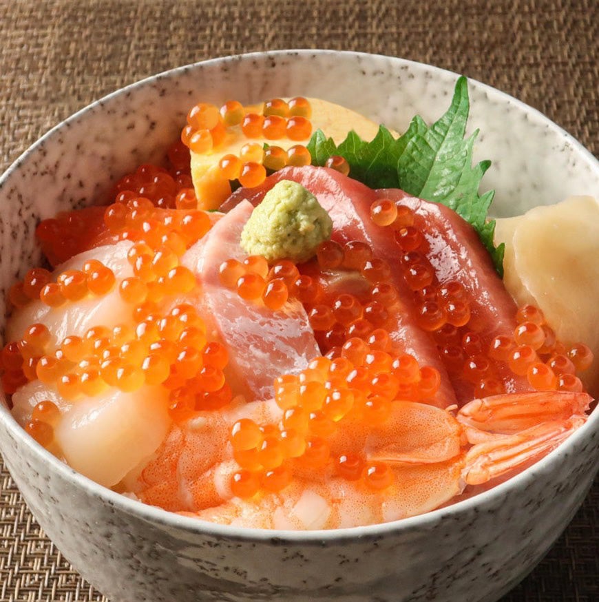 中とろなど、ちょっと贅沢で美味しいネタが9種類揃っている海鮮丼です。