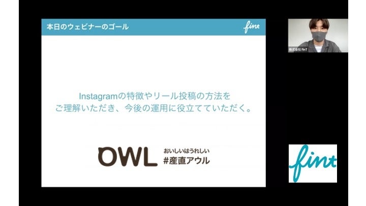 農畜水産物の産直サービス「OWL(アウル)」(以下「産直アウル」、運営:レッドホースコーポレーション株式会社)は、6月22日、SNSマーケティング支援の株式会社FinT(所在地:東京都目黒区、代表者:産代表取締役 大槻 祐依)と共同で産直アウルに登録いただいている生産者を対象に「産直アウルインスタグラムセミナー」を開催しました。当日は事前に募集した希望者54名が参加し、インスタグラムの特徴やリールの投稿、運用などを熱心にお聞きいただきました。
