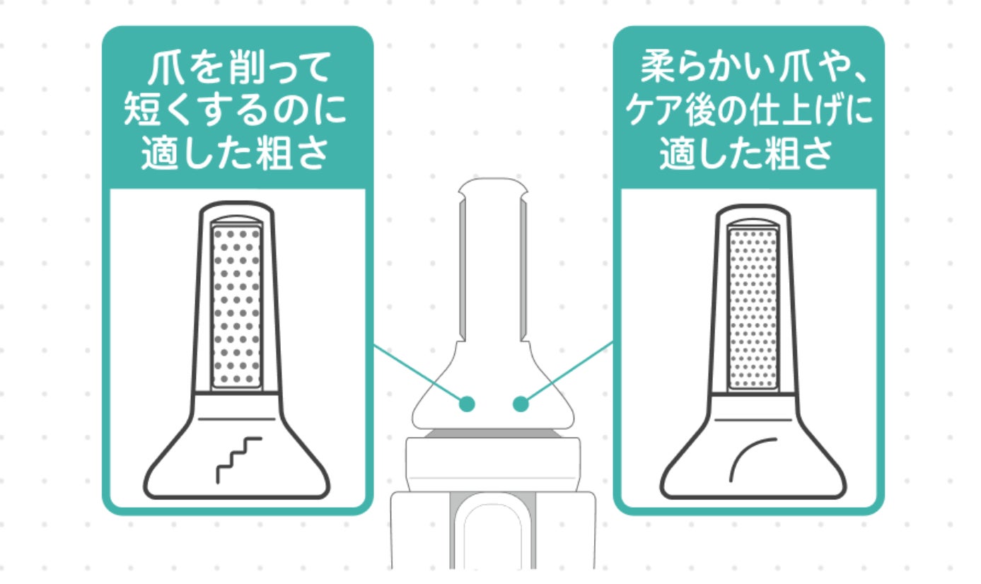 また、2種類の粗さの異なるやすりが付いており、用途や爪の成長にあわせて使い分けられます。