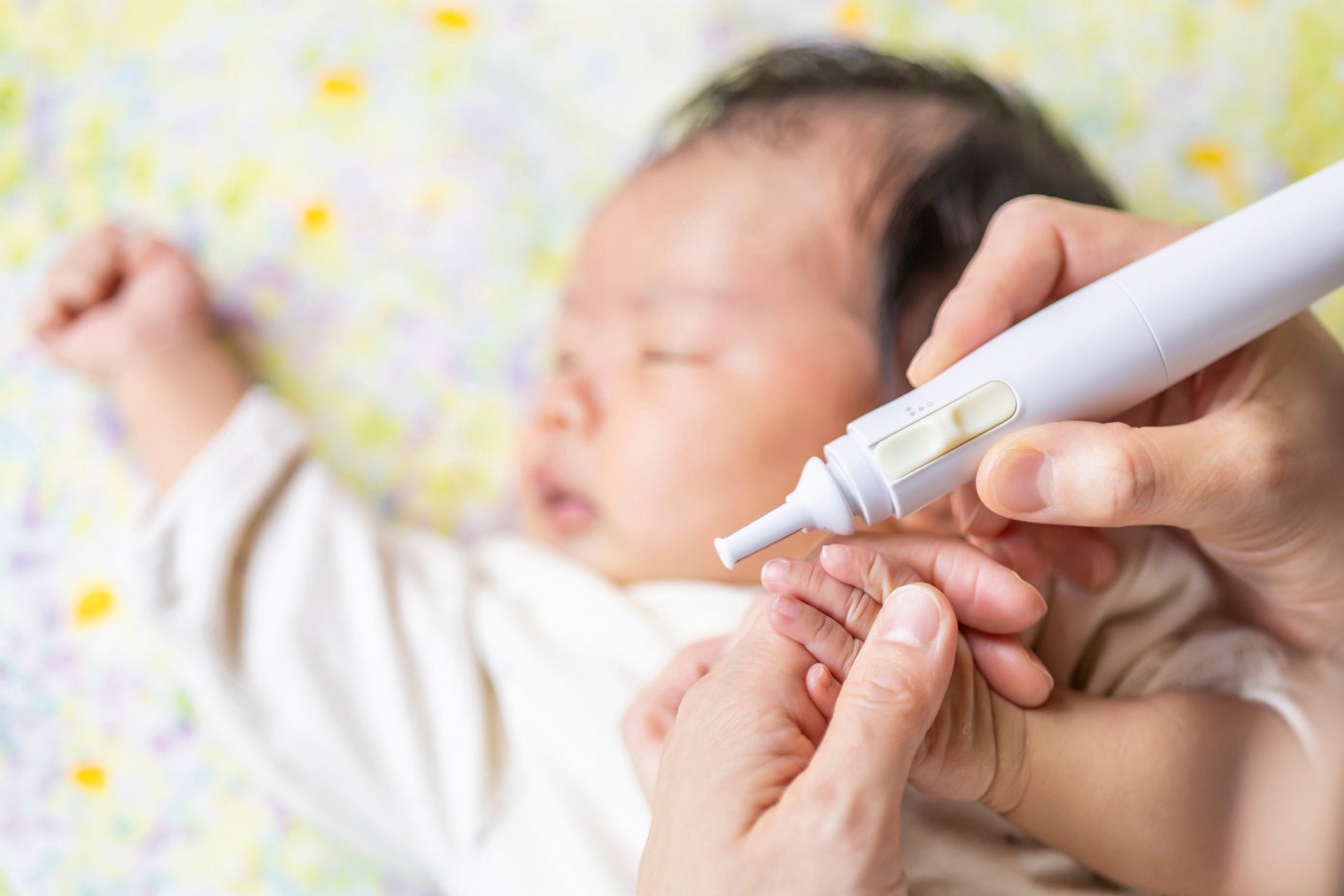 赤ちゃんの爪は小さくて柔らかいうえ、新陳代謝が活発なため伸びるペースがとても早いことが特徴です。特に低月齢の赤ちゃんは、伸びた爪をそのままにしておくと自分の顔を引っ搔いて傷つけてしまうこともあるため、自宅でこまめにケアしてあげることが大切です。