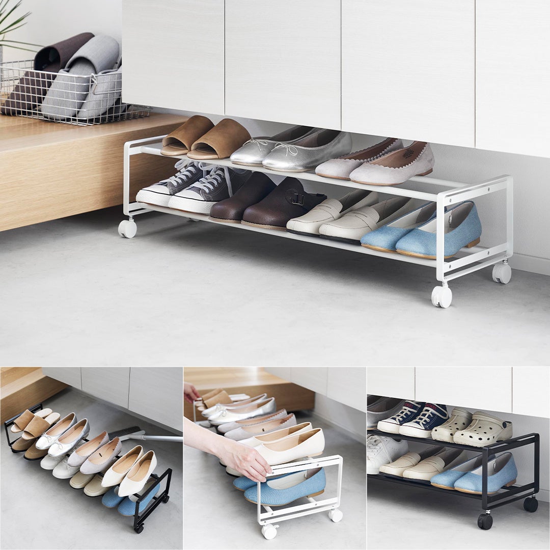 あふれた靴を下駄箱下に隠して一括収納できる2段のシューズラック。