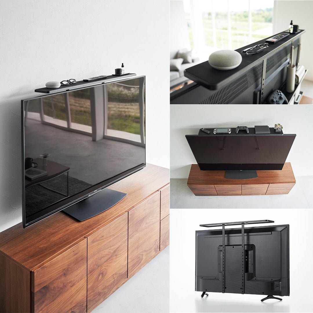 スマートスピーカー(AIスピーカー)・リモコン・録画用HDD・ゲーム周辺機などテレビ周りの小物が置けて便利。