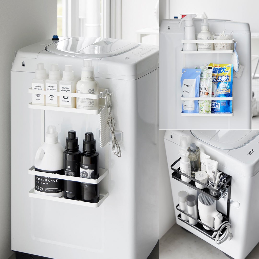 マグネットで洗濯機の側面に設置できる2段の収納ラック。