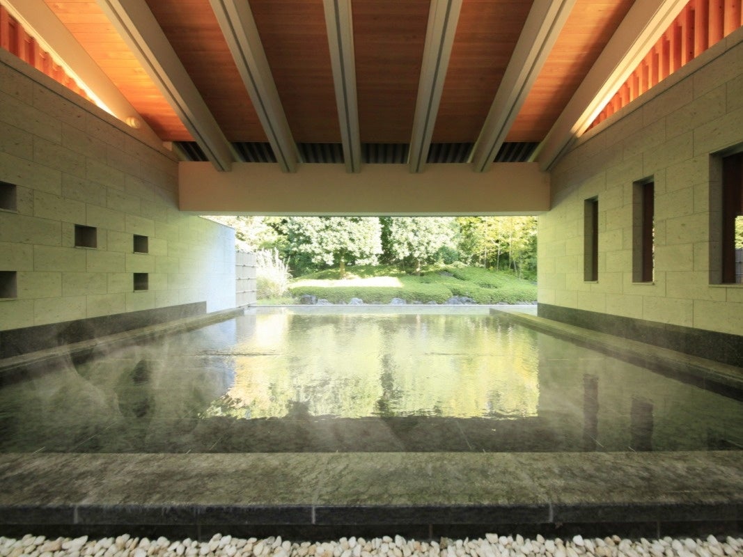 澄み渡る海と大自然に囲まれた「赤沢迎賓館」は、静謐な空間でプライベートな宿泊が愉しめる上質な宿です。1,000坪を超える広大な敷地の中に、日本建築の伝統美と匠の技が織り成す洗練された空間が佇みます。網代編みの天井や聚楽の塗り壁など、厳選された意匠と上質な素材が生み出す優雅な設え。また、全15室すべての客室には露天風呂を備えており、日本庭園や自然を目の前に木々のゆらぎを感じながら、プライベートな湯浴みをお愉しみいただけます。大浴場では、深緑が心地よい自然に溶け込むような湯浴みをお愉しみいただくことができます。湯には、伊豆の水深800mから汲み上げた海洋深層水を用いております。ミネラル成分を豊富に含んでおり、やわらかな湯あたりと、肌をしっとり優しく包み込む心地よさをご体感いただけます。美しい日本庭園や自然を望み、重厚な趣の中に身をゆだね、穏やかな時間の流れをご体感ください。