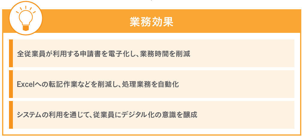 こうした電子化の取り組みにより、ヤンマー建機は年間換算で1000時間以上の業務削減を達成された上、身近な業務の電子化からスタートしてシステムを全社展開したことにより、これまでITに馴染みの薄かった従業員の“デジタル化”への意識醸成にも成功されています。