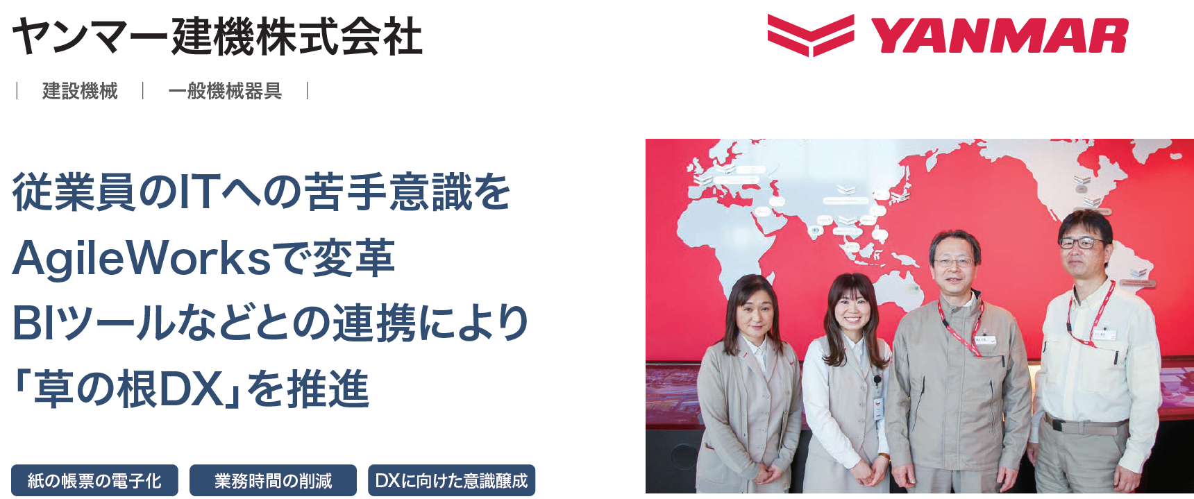ヤンマー建機株式会社が、ワークフローシステム「AgileWorks」導入により年間換算で1000時間以上の業務時間を削減