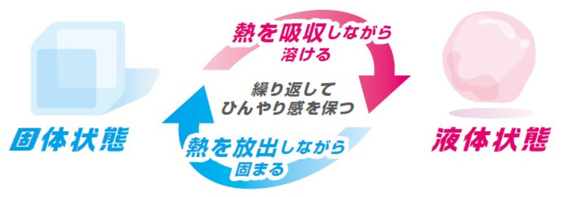 26℃以下で自然に凍結。保冷剤や氷とは異なり、心地よいヒンヤリ感をキープ(※3)。