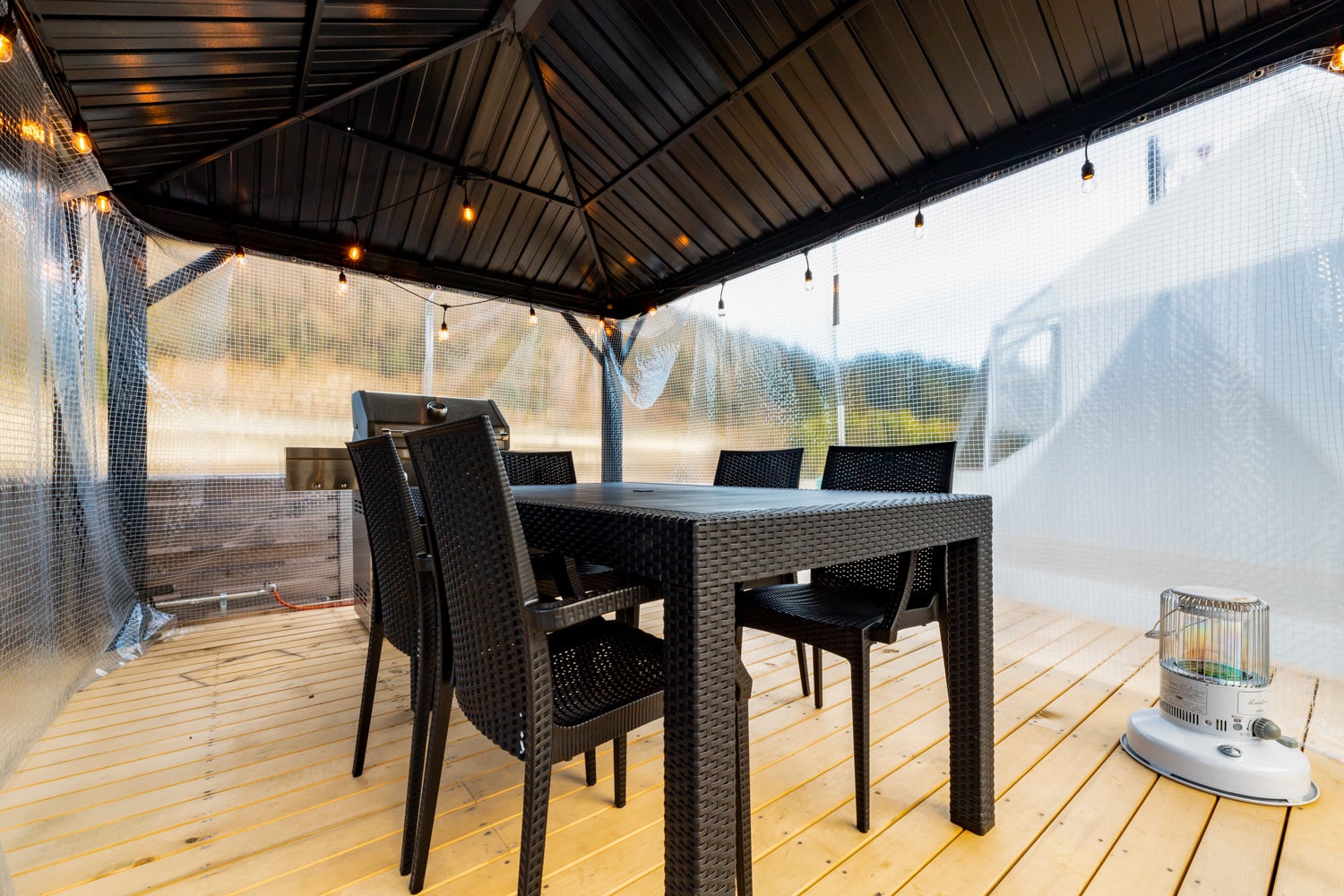 食事スペースは個別で設置しておりますので、他のお客様と接触する機会が少なく気兼ねなくお過ごしいただけます。安心・安全な環境で思う存分グランピングをお楽しみください。