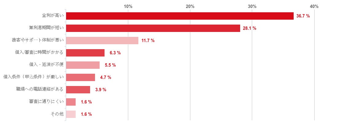 一方、アイフルの改善点には、「金利が高い」ことや「無利息期間が短い」ことなどが多く挙がった。