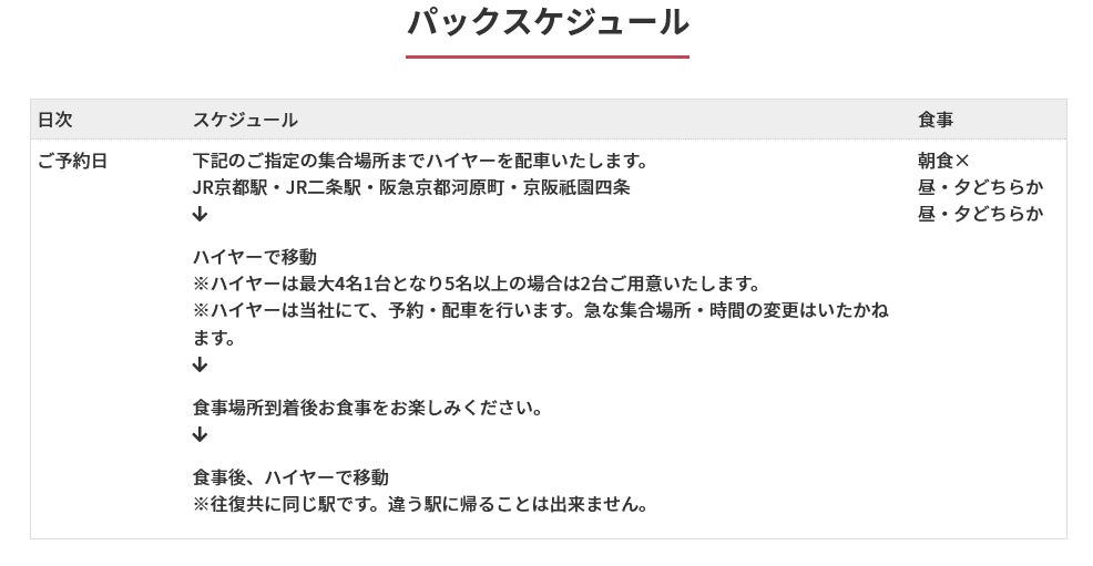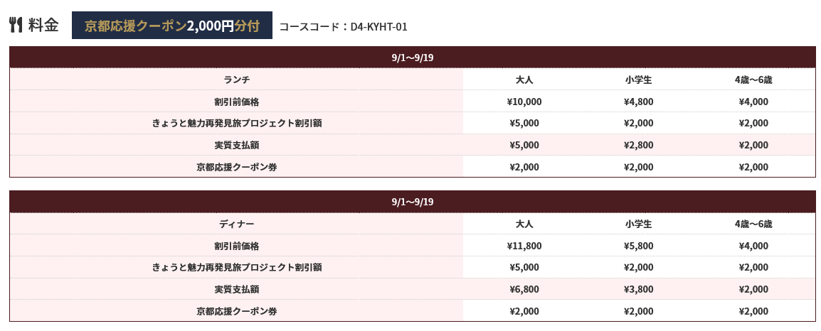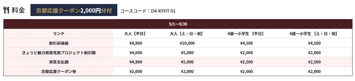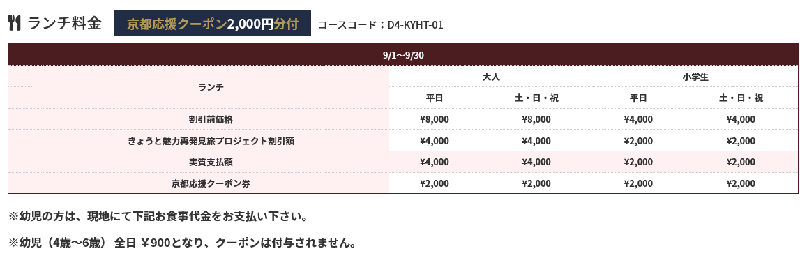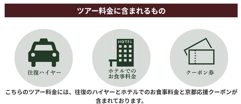 こちらのツアー料金には、往復のハイヤーとホテルでのお食事料金と京都応援クーポンが含まれております。