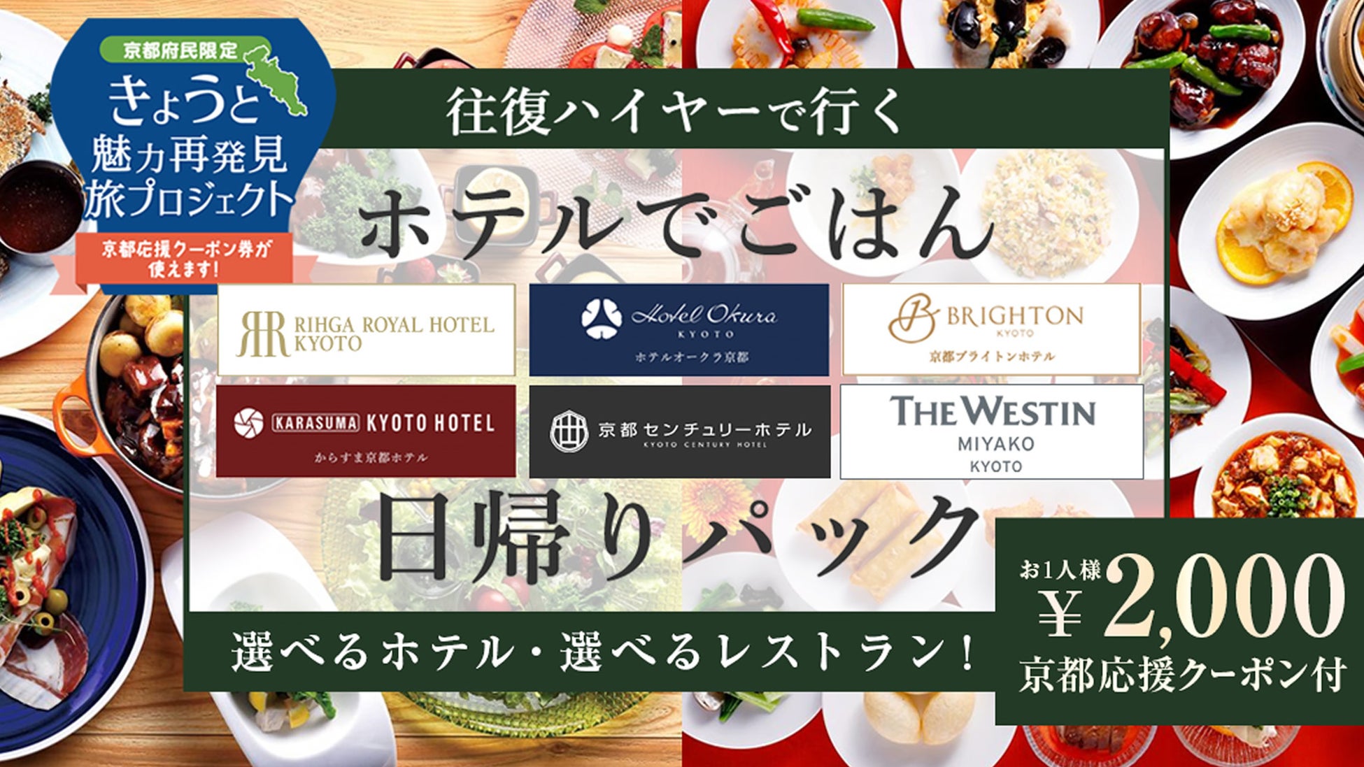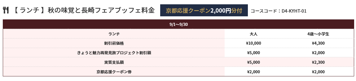 【きょうと魅力再発見プロジェクト】対象商品お一人様づつ2,000円のクーポン付4,000円で豪華ホテルでランチバイキング+往復ハイヤー+クーポンが付いてくるプランがリニューアル!!