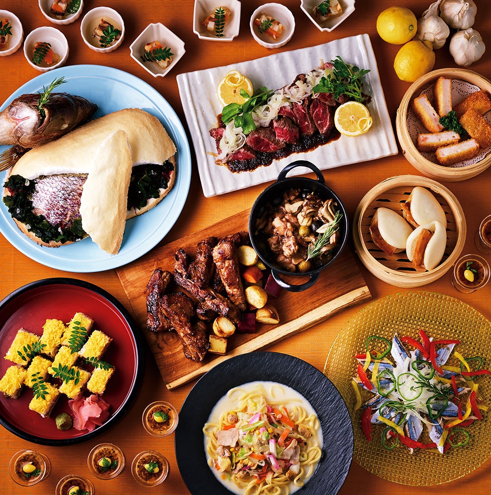 生春巻き(ベトナム)/ソムタム(タイ)/中華くらげときゅうりの棒棒鶏/パッタイ(タイ)/カレカレ(フィリピン)/サテ(インドネシア)/スンドゥブチゲ(韓国)/お月見玉子豆腐/韓国風海苔巻/くらげとイカの酢の物/鰻巻き玉子 九条ねぎの薄葛あん/海老芋と京豆腐の揚げ出し/海老湯葉巻きの華麗風味揚げ