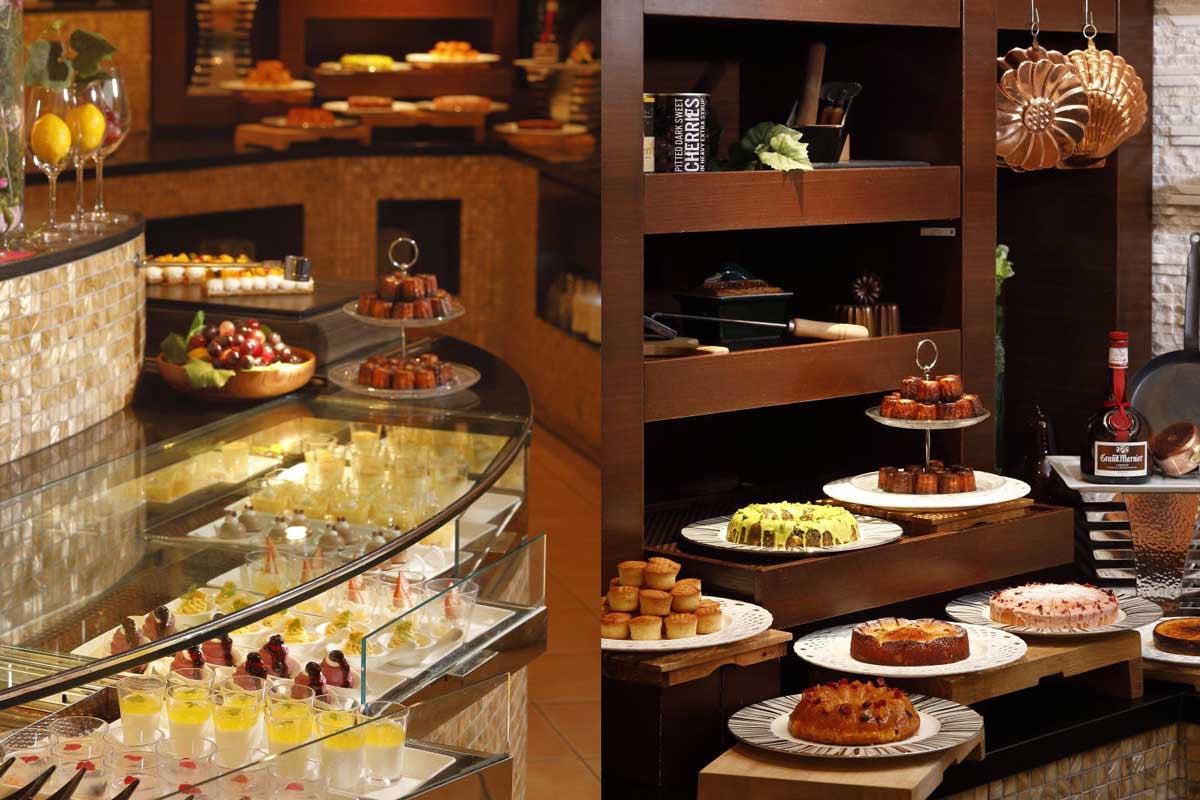 カザのビュッフェでは、出来立てを味わえるライブキッチン、美しい冷製料理や、ショーケースに入ったデザートまで、 5つの個性豊かなビュッフェエリアに、シェフがうみだすクリエイティブなお料理が並びます。