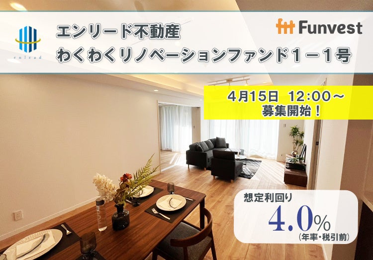 貸付型クラウドファンディング「Funvest」4/15より新ファンド「エンリード不動産 わくわくリノベーションファンド1-1号」の募集開始