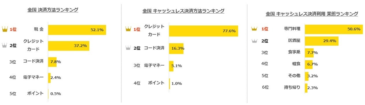 全国における決済方法では、引き続き現金が52.1%で第1位となった。