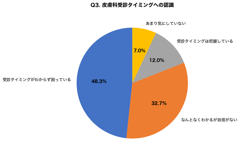 設問:お子さんの皮膚トラブルについて、皮膚科への受診タイミングについてどのように感じていますか?
