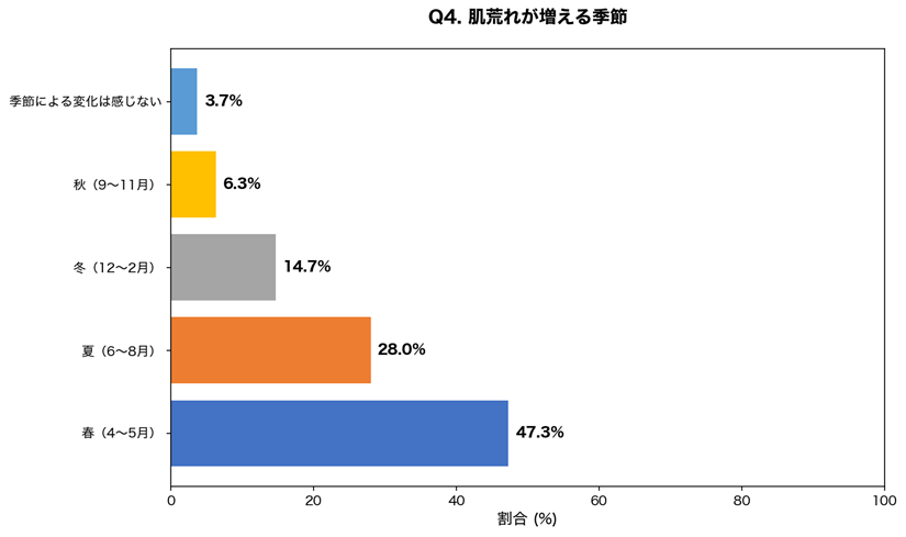 ・10代の肌荒れが最も増える季節は「春(4〜5月)」が47.3%で最多、新学期のストレスが影響