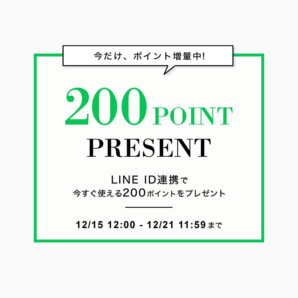 期間中、LINEのID連携をいただくと、通常100ポイントのところ、200ポイントを付与いたします。
