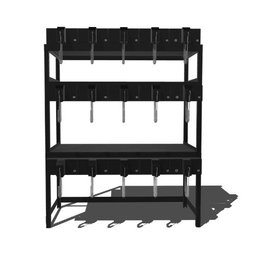 既製ラックをベースにケーブル機構を組み合わせることで、スーツケースをまとめて預けられる構造を実現しました。ロビーや共用部への常設設置が可能となり、荷物預かり対応のセルフ化を促進します。