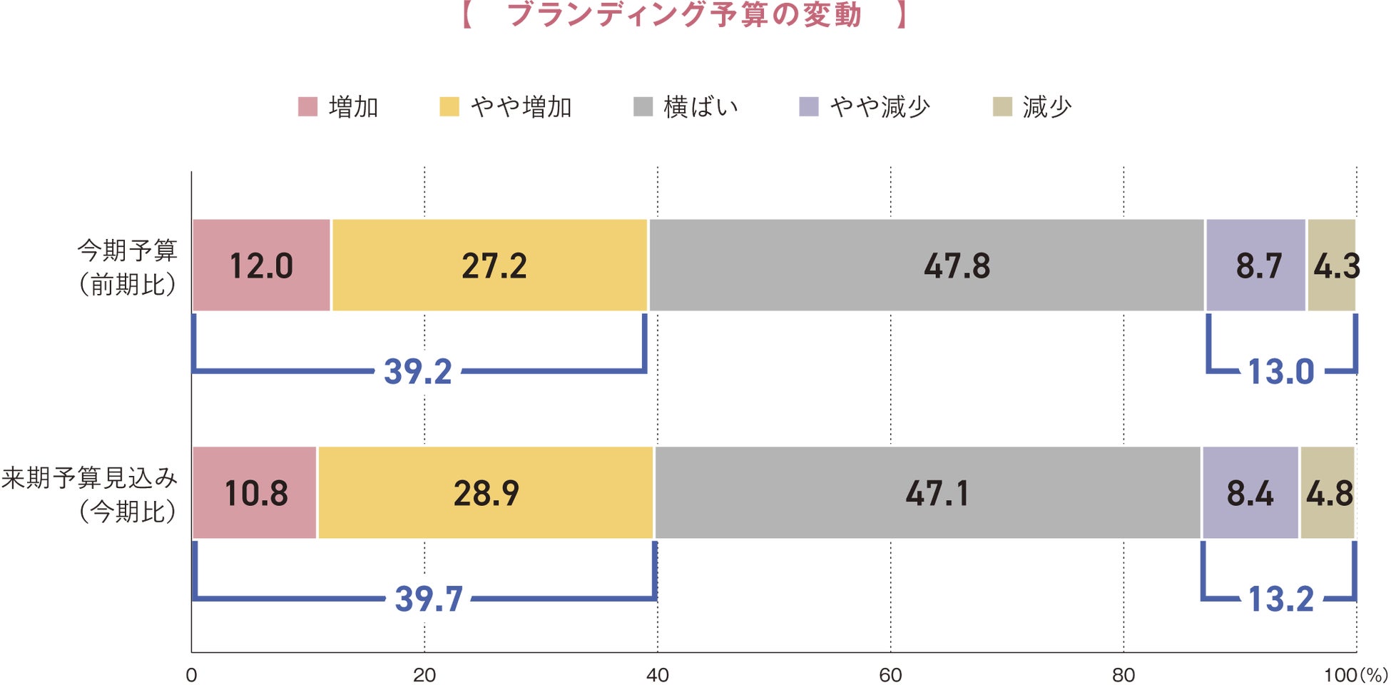 ■ブランディングの予算傾向は、約4割の企業が「増加・やや増加」と回答。