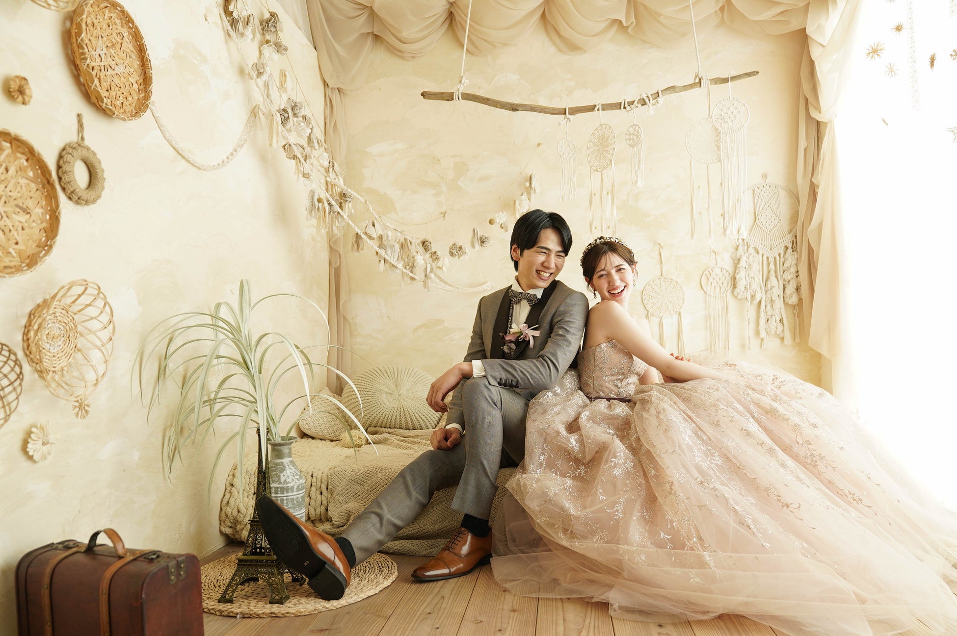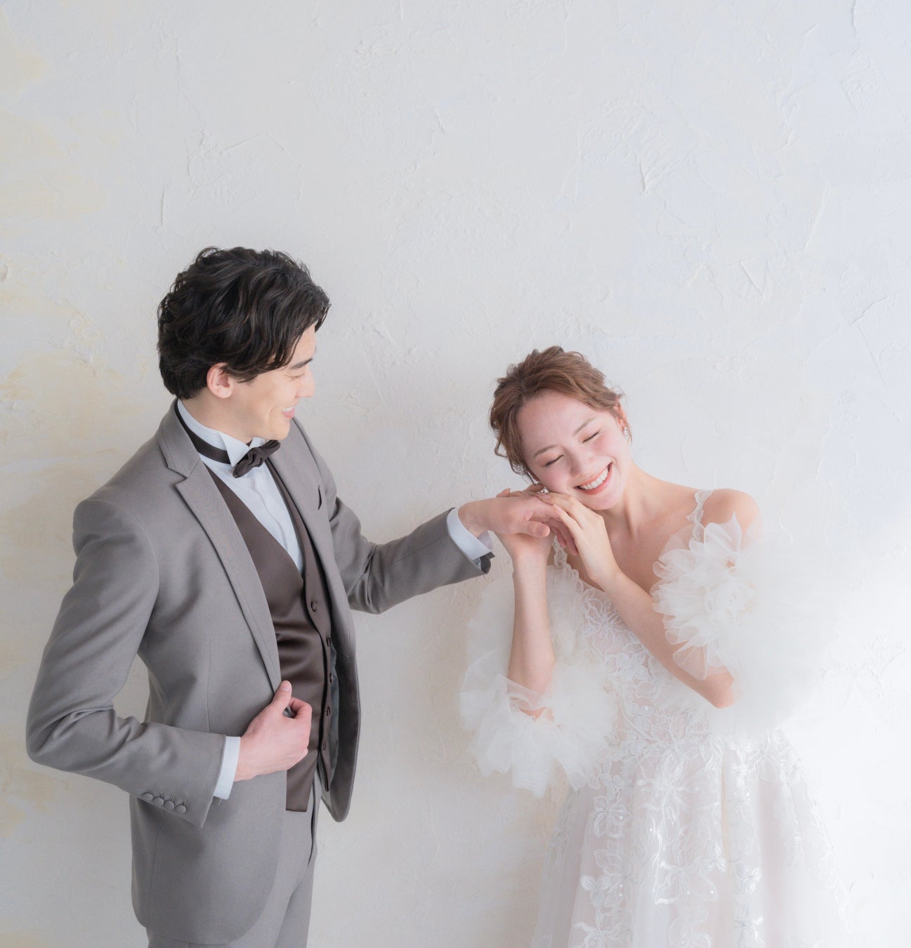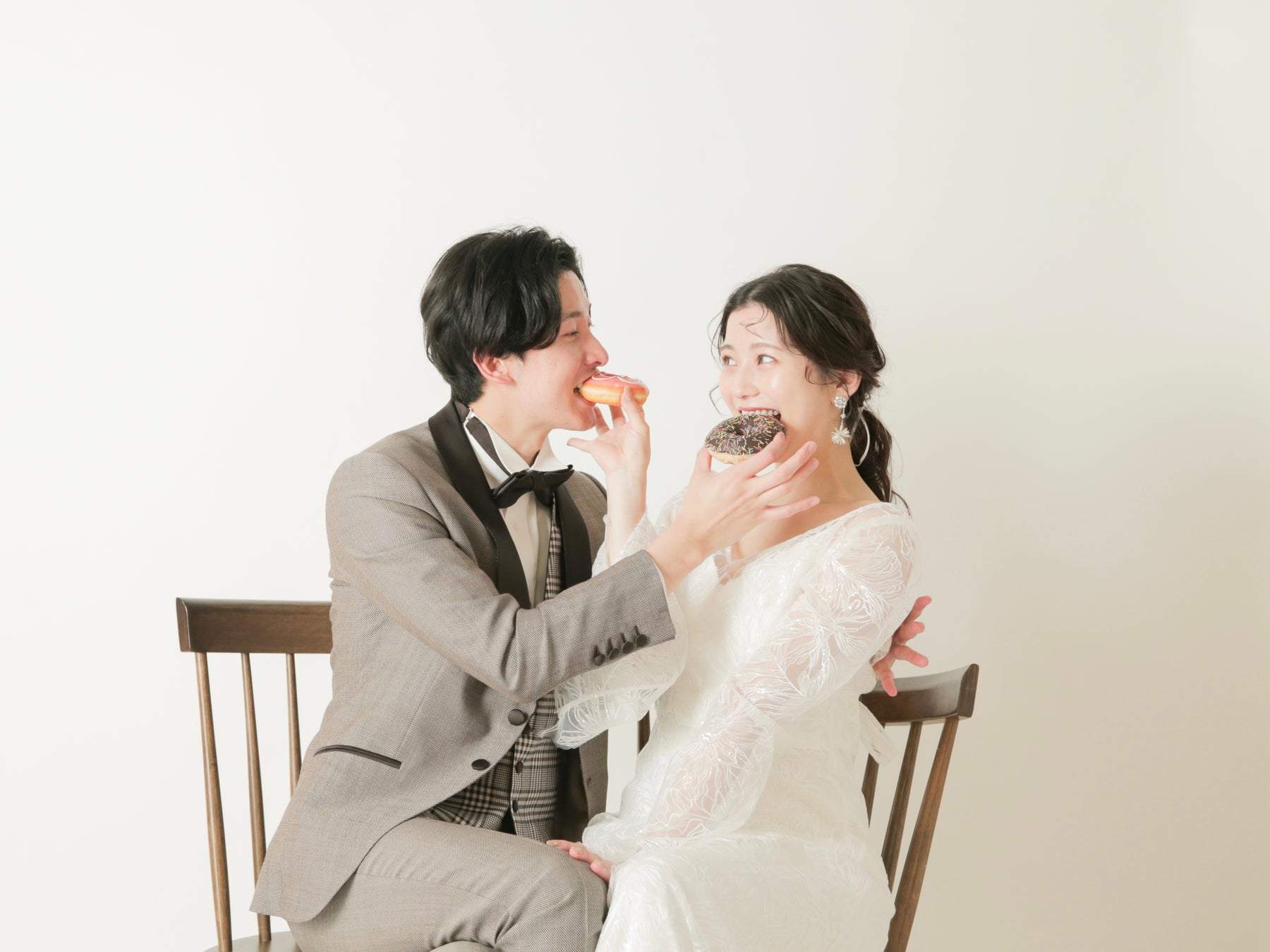 クレールでは、マイドレスや私服・成人式の際の振袖・儀礼服などのお衣装から、お好みのブーケ、おふたりのお仕事や趣味がわかるアイテム、ご家族への感謝の気持ちを込めた幼少の頃の写真まで、お持ち込みは一貫して無料です。そのため、今まで多くのご夫婦様が「いまのふたりらしさ」がいっぱいのお写真を叶えていらっしゃいます。