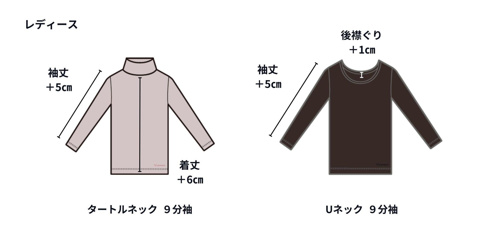 レディース:タートルネック9分袖、Uネック9分袖、レギンス