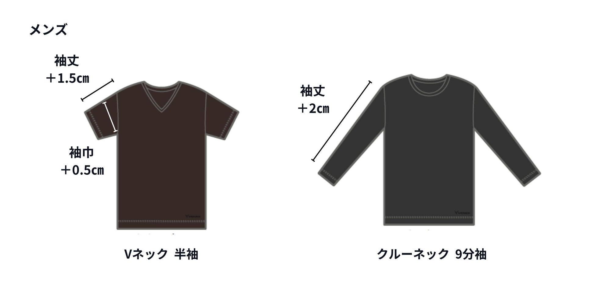 さらに今回、肌に触れる心地よさを実感していただているからこそ寄せられた、「もっとベネクスの生地に包まれたい」というお客様のご要望にお応えし、製品の寸法を見直しました。メンズは、『Vネック 半袖』の袖丈を+1.5㎝、袖巾を+0.5cmに、『クルーネック 9分袖』の袖丈を+2.0cmに。レディースは、『タートルネック 9分袖』は着丈+6㎝、袖丈+5㎝、『Uネック 9分袖』を袖丈+5㎝、後襟ぐり+1㎝にしています。