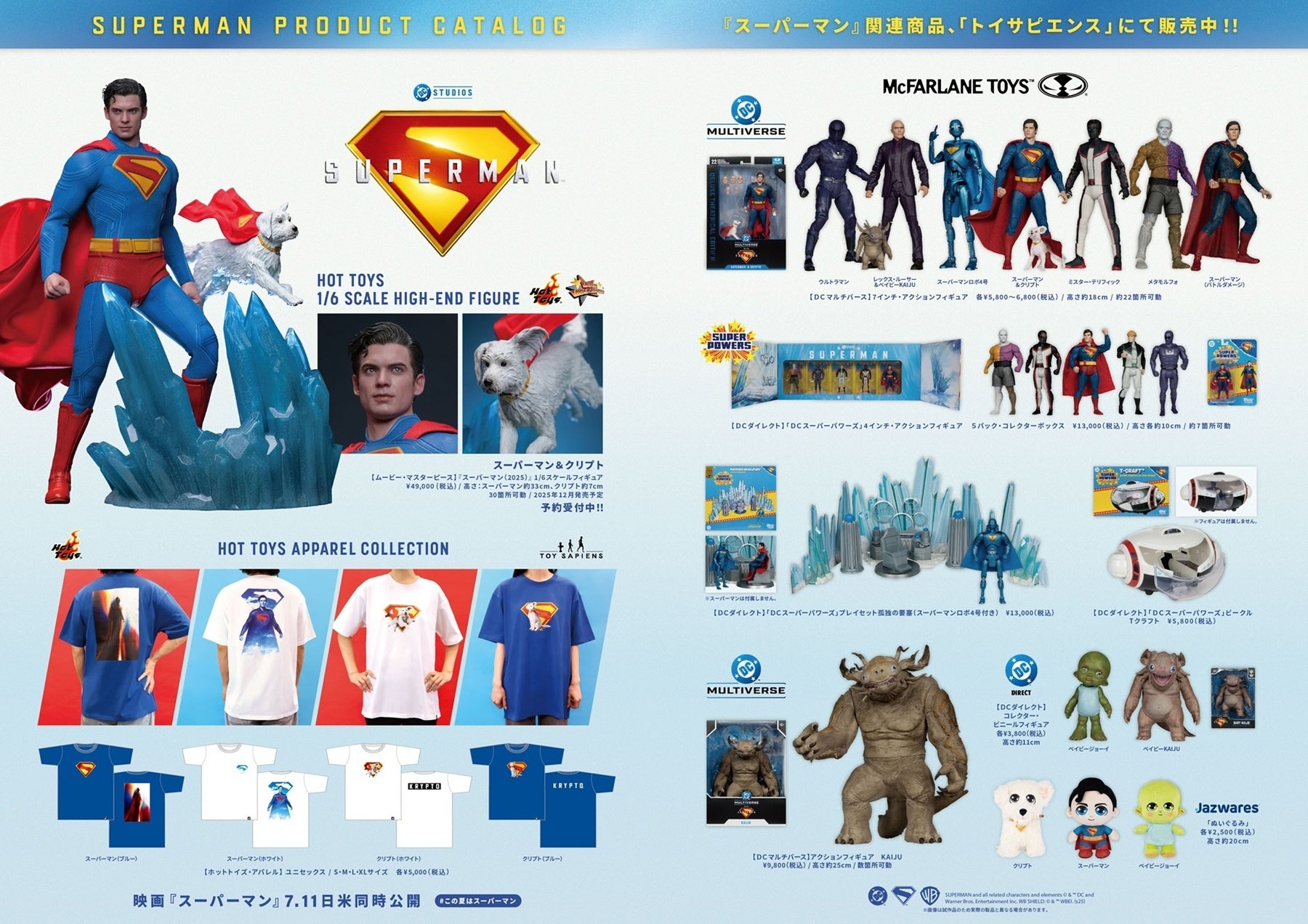 株式会社ホットトイズジャパン(所在地:東京都渋谷区、 代表取締役社長:フランク・デュボア)は、アメリカの玩具メーカー、マクファーレン・トイズとジャズウェアが展開する、7月11日(金)公開の映画『スーパーマン』関連アイテムを、国内正規代理店として取扱い開始いたしました。ホットトイズのフラッグシップ・ストア「トイサピエンス」ほかにて発売中です。